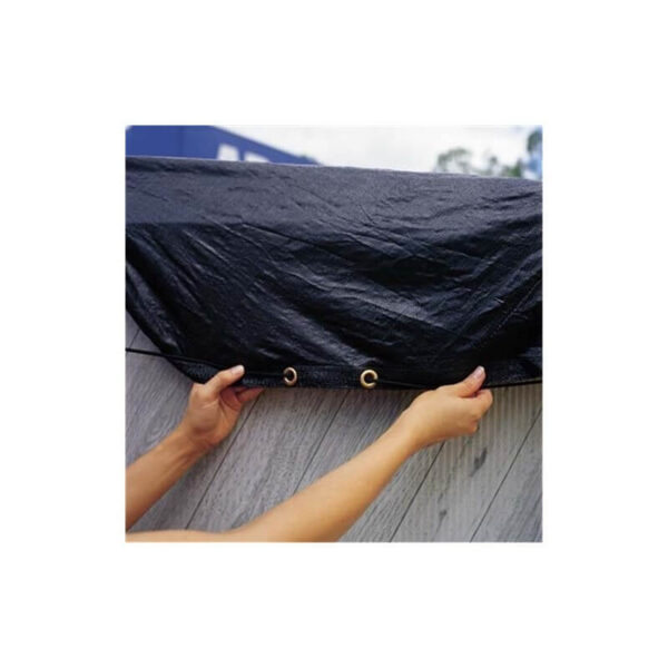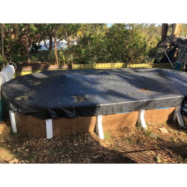 This easy to use pool cover is made from a high tech, exclusively blended, micro mesh fabric that stops leaves from getting in, but allows rain water through. It has a generous overlap of 400mm (15') and a marine grade stretch cord threaded through grommets sewn into the hem for easy fitting. The cover simply stretches over the pool top rail like a big shower cap!. The grommets are fitted at 400mm (15') spacings so you can tie down the cover if you want to use it with a pool cover float.